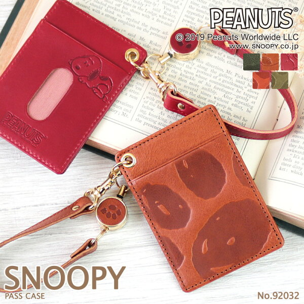商品カテゴリ:【茶色】【キャメル】【レッド】【赤】【グリーン】【緑】パスケース レディース PEANUTS ピーナッツ スヌーピー リール付き 定期入れ かわいい おしゃれ キャラクター 本革 レザー イタリアンレザー 牛革 ストラップ シャンタン シンプル 型押し 足跡 オリジナルデザイン